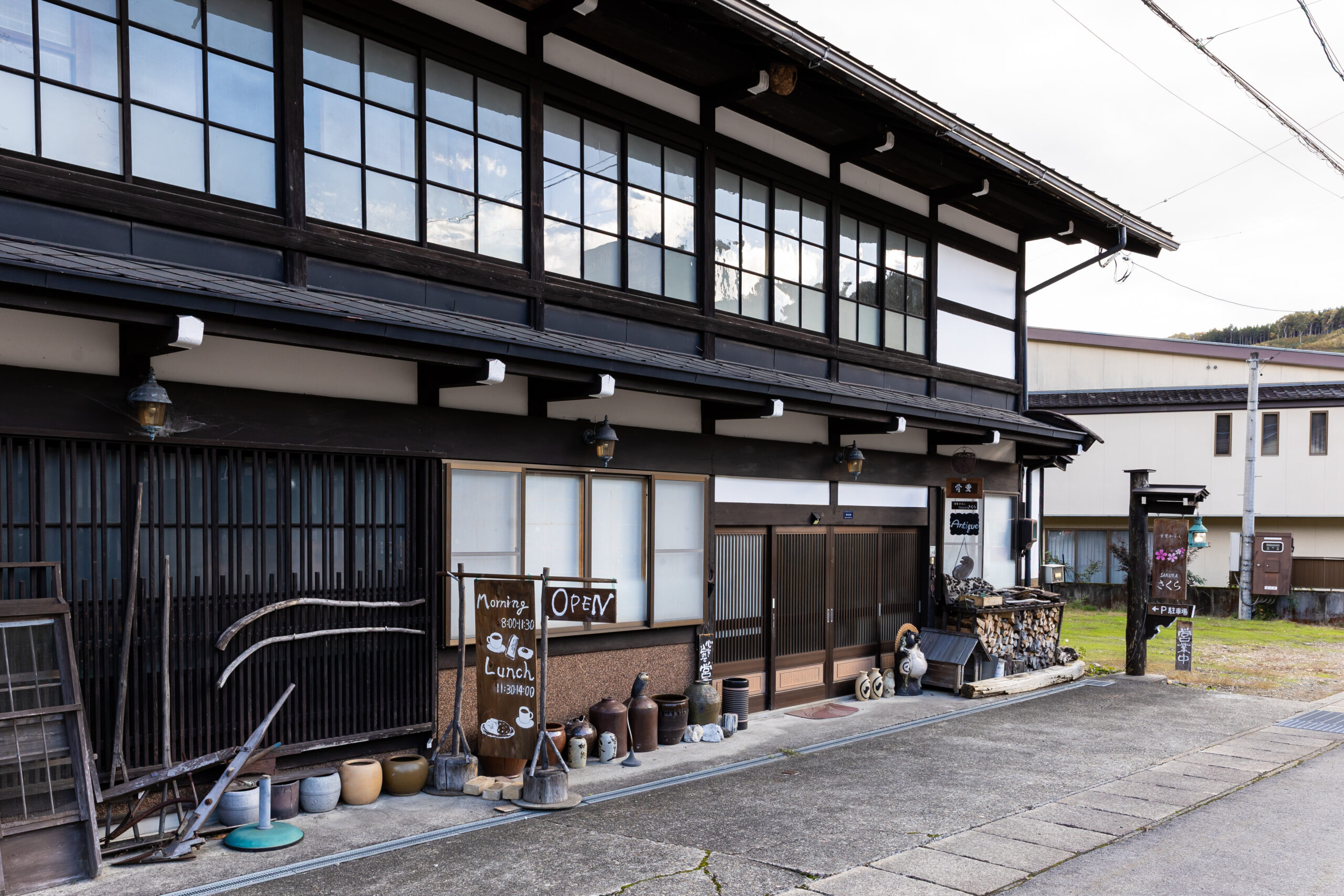古民家を改装したレトロな雰囲気のショップ&カフェです。アンティーク食器や古美術品が展示される落ち着いた趣の店内で、牛すじカレーなどの料理やドリンクメニューを味わえます。
