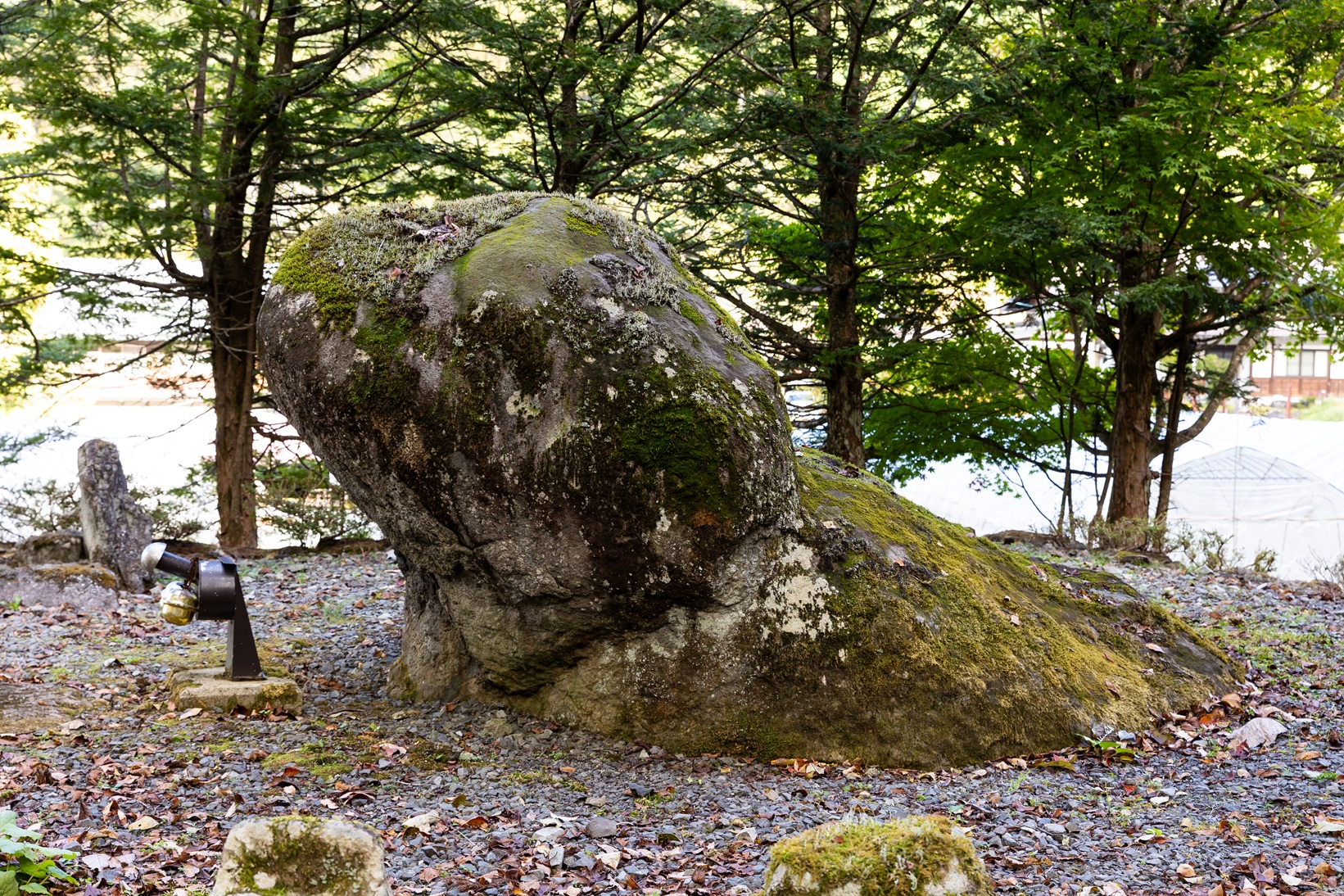 まるで巨大な棒が斜面に突き立ったような形は、インパクト抜群。自然の侵食によって生まれたそうで、知る人ぞ知るスポットになっています。国道156号沿いにあり、走行中にも目を惹く存在感。大岩を撫でると、子宝や恋愛成就、夫婦円満などのご利益があると言われています。ドライブ途中に、立ち寄ってみてはいかがでしょうか?