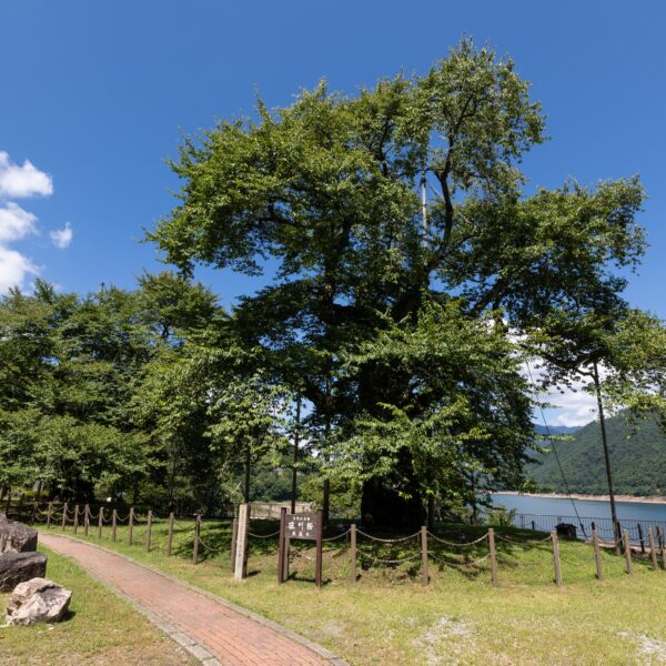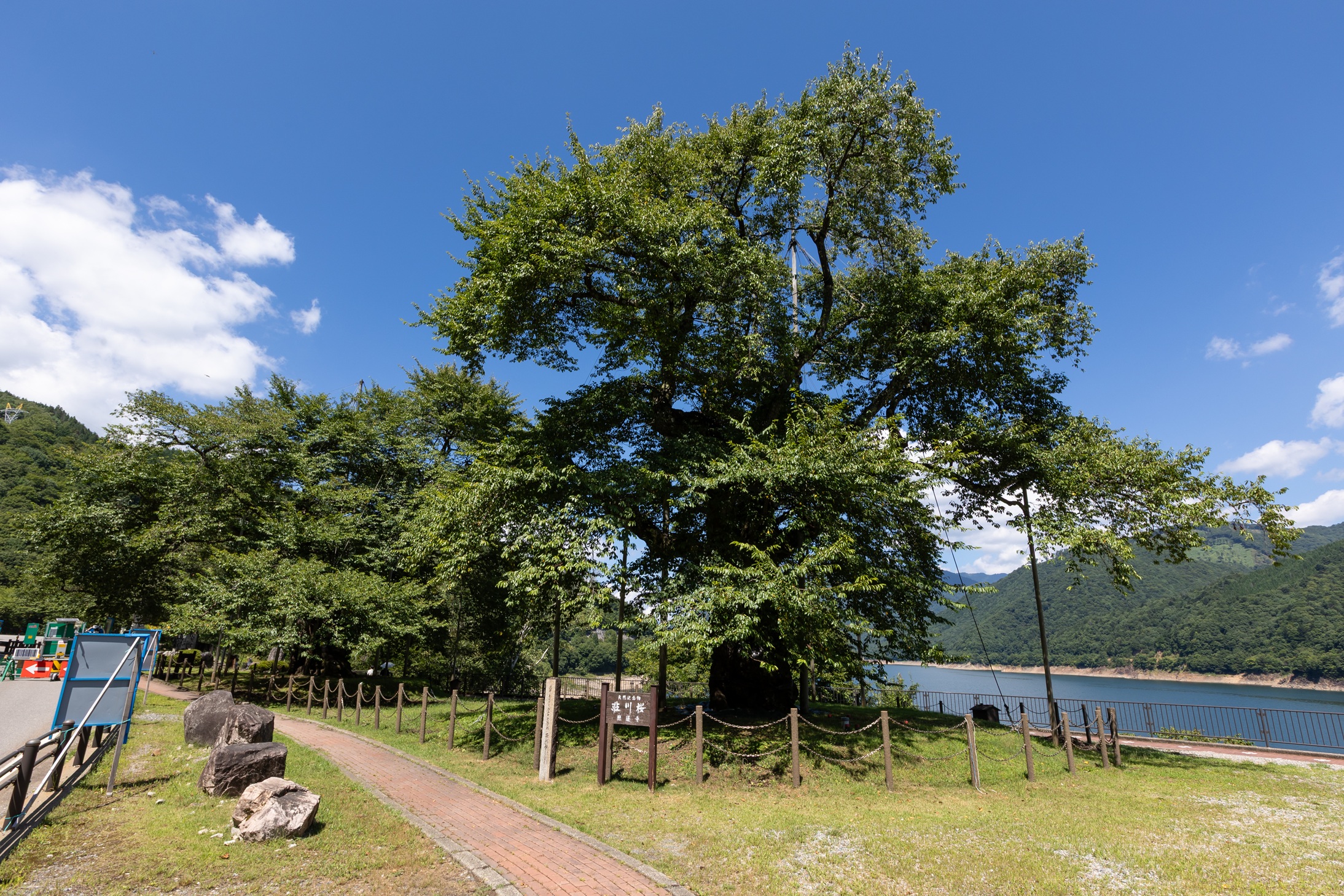 御母衣湖畔の展望台に佇む、樹齢500年余年のアズマヒガンザクラ。かつて照蓮寺と光輪寺の境内にそれぞれ根付いていた巨木は、御母衣ダム建設の際に湖底に沈むのを惜しんで移植され、現在も春になると美しく花を咲かせています。