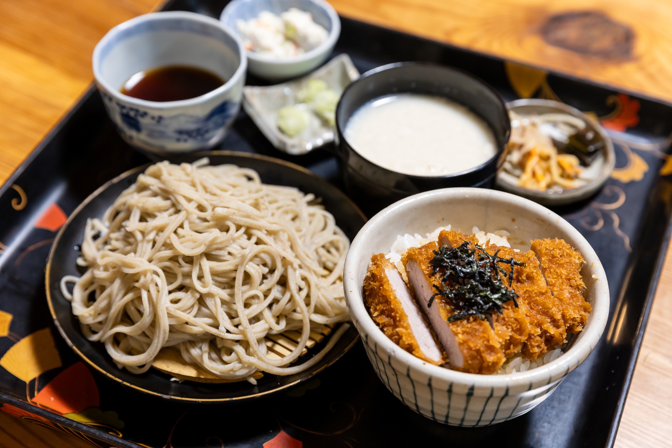 イチオシは荘川産のそば粉を使用したそばとミニヒレカツ丼がセットになった「丼とセット」。豆乳を出汁でのばした郷土料理「どぶ汁」も評判です。