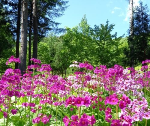 公園の一角にある花園には、約15 万本のクリンソウに始まり、