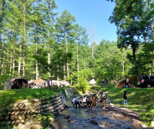 昼間は水遊びや魚のつかみ取り、渓流釣りなども楽しめ、