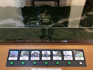 - 紹介ジオラマ: 荘川町を鳥瞰(ちょうかん)し、観光施設などを映像と連動して紹介します。